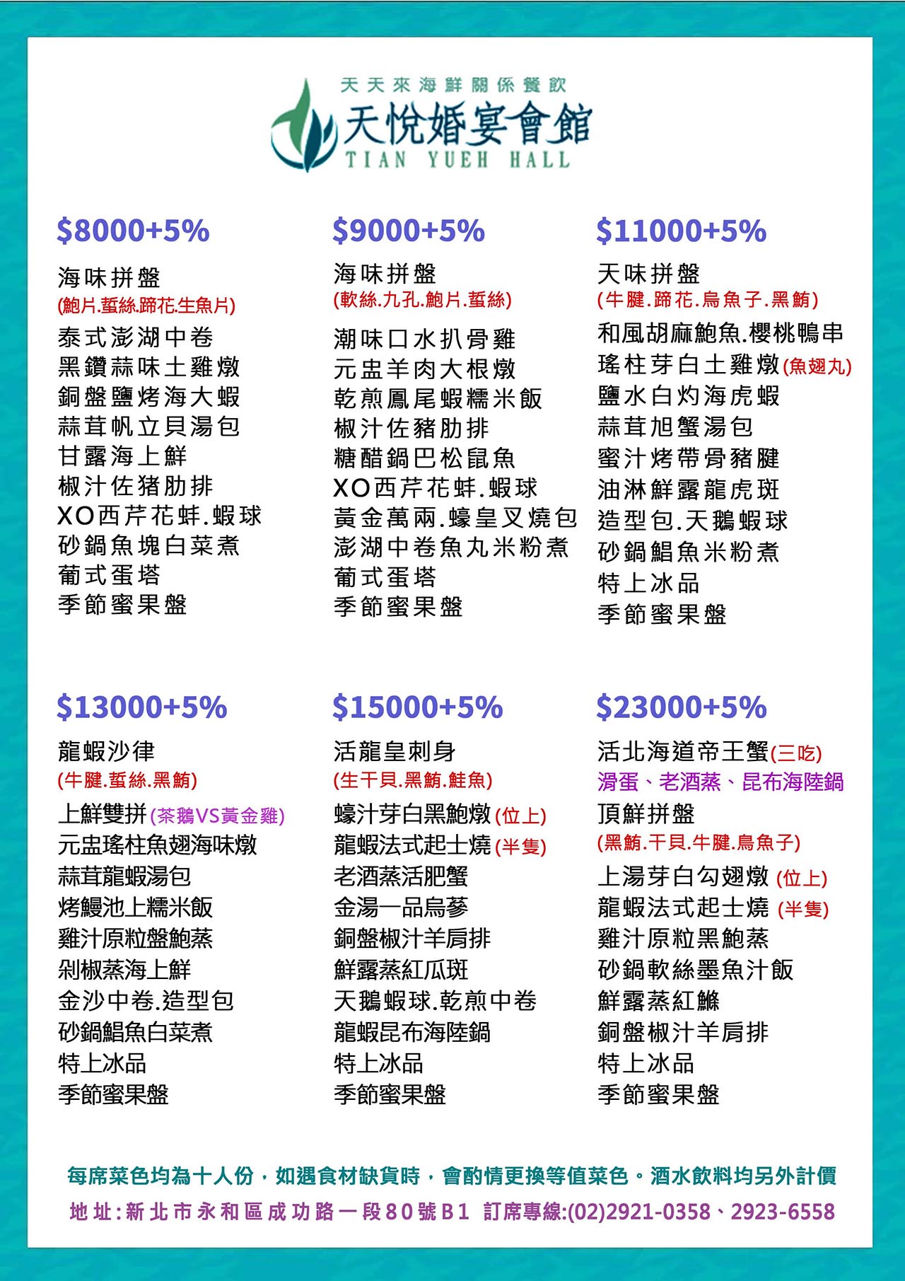 筵席餐敘菜單